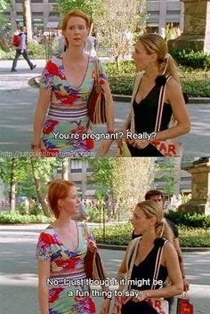 Now, it takes me 5-7 business days. I wonder if I’ll ever finish this article, let alone publish it. Maybe this will remain a draft I stumble across when baby is off to college… But, for now, I’ll emulate my inner Carrie Bradshaw while I look and feel more like Miranda Hobbes. (Oh yeah, there’s no Charlotte York-ing the first trimester… Unless you count the first SATC movie where she 💩 her pants on Carrie’s disaster honeymoon.)